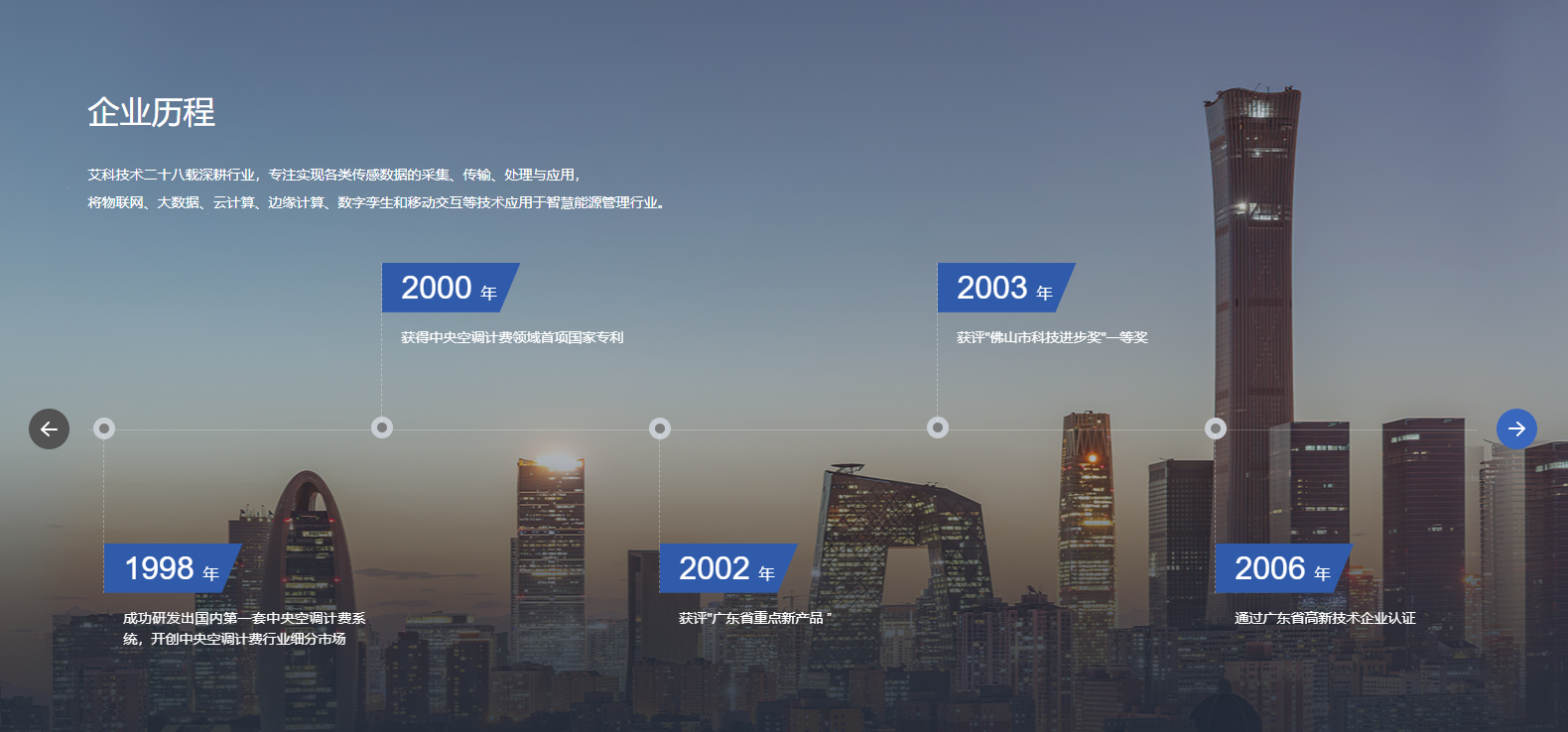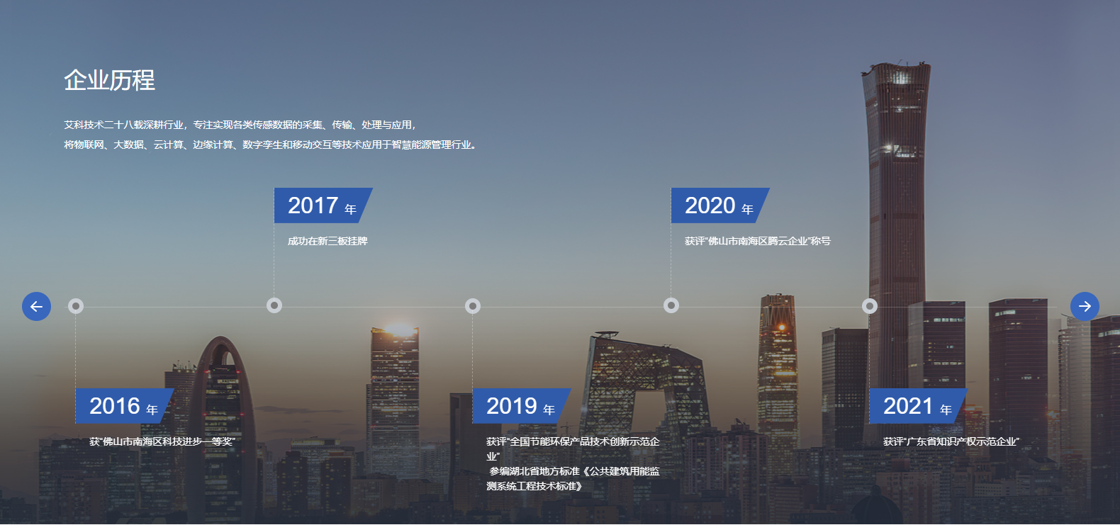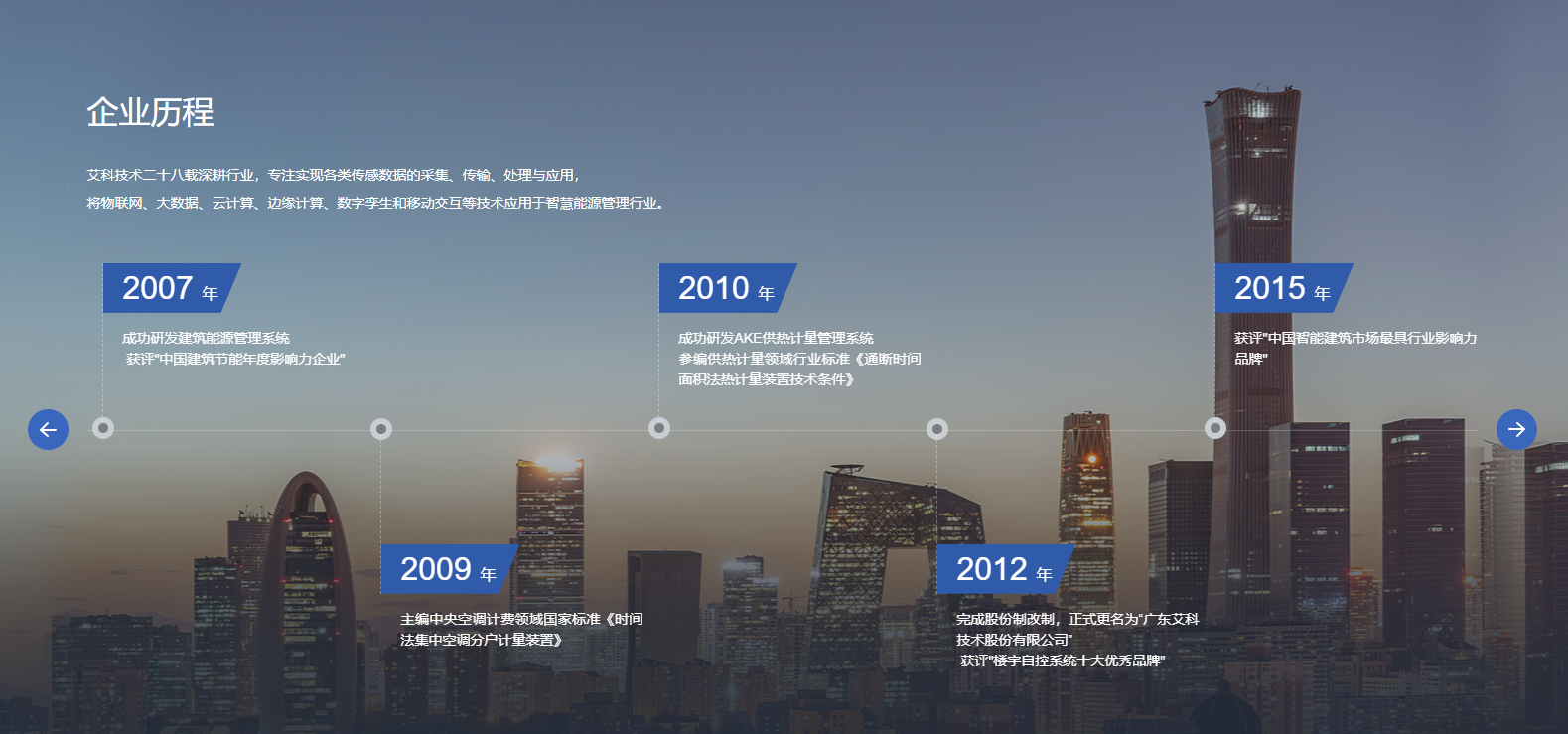 廣東艾科技術股份有限公司成立于1997年,是國內領先的智慧能源管理整體解決方案服務商,2017年艾科在新三板掛牌,股票代碼871148。艾科一直堅持自主創新,擁有強大的產品研發能力,致力于以管理促進節能,以技術創新節能,為國內外客戶提供建筑能源管理、智慧水務、智慧供熱、綜合節能服務四大領域的整體解決方案,助力客戶實現能源管理信息化、自動化、智能化和精細化,助力不同業態實現綠色節能與降本增效,實現“雙碳”目標。